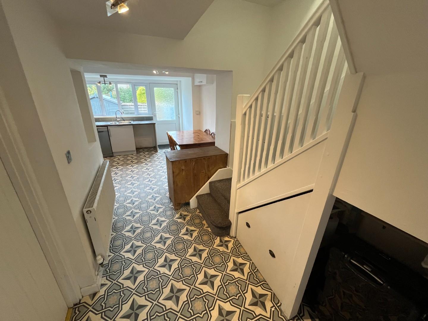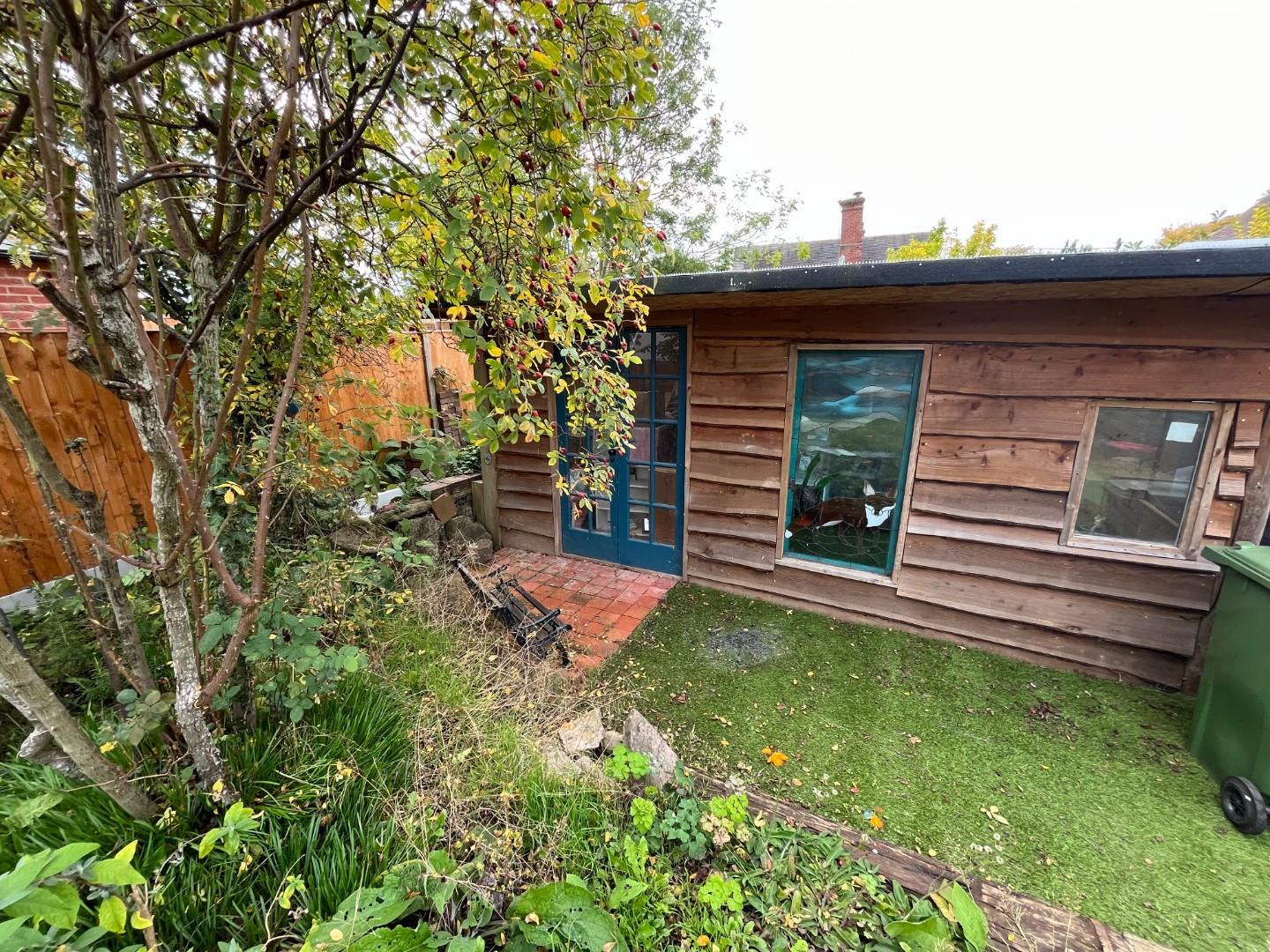 The property briefly comprises to the ground floor sitting room with wooden floor, kitchen/diner and bathroom/WC. To the first floor landing, large double bedroom and second bedroom or study. Outside small rear garden with shed and opposite is parking for 2 cars and large studio/storage